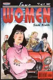Four Women is an American five-part limited series published by Homage Comics.[1] Written and drawn by Sam Kieth, it deals with four female friends of varying ages—Donna, Bev, Marion and Cindy—and a road trip during which they are attacked and sexually assaulted by two men.[2] The story mostly takes place in a flashback as Donna recounts the story to her psychiatrist.