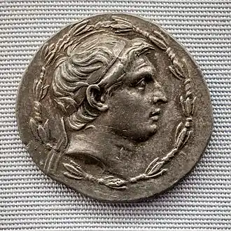 Tensions between the Roman Republic and Macedon had first begun in 215 BC, when Philip V of Macedon allied himself with Rome's rival, Carthage, and declared war on Rome, sparking the First Macedonian War, an indecisive sideshow of the larger Second Punic War between Rome and Carthage.[3] Soon after the end of the war with Carthage, a victorious Rome received multiple requests for assistance from a number of Greek polities and city-states which were afraid of Philip's ambition. Although war-weary from the recent Punic War, Rome agreed, and when Philip refused to accept their terms, they declared war on and defeated him in the Second Macedonian War of 200-197 BC, in which Philip was stripped of much territory and prestige, and forced to comply with Rome's demands.[4] In the aftermath of this conflict, tensions developed between Rome and the Seleucid Empire, whose ambitious monarch, Antiochus III the Great, aimed to attain hegemony over Greece. Encouraged by the Aetolian League, Antiochus went to war with Rome in 192 BC, sparking the Roman-Seleucid War; it ended in a resounding Roman victory — Antiochus lost all his territory in Asia Minor and had to disband his fleet, pay a massive war indemnity and promise not to cross the Taurus mountains, effectively relegating the Seleucids to an Asiatic power and ending their influence in Greece.[5] Macedon regained some territory and influence on account of their cooperation with the Romans in this conflict, but high-handed Roman actions and Macedonian revanchism continued to stoke resentment in Philip.[6]