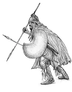 Andriscus then travelled to Thrace, where he found allies and sympathy, especially from the Odrysian king Teres III, who was related to the Antigonids by marriage.[29][28] Teres held a coronation ceremony for Andriscus, crowning him with a diadem, gave him a hundred troops, and introduced him to other Thracian leaders, including one Barsabas, who agreed to accompany him on his campaign to reclaim the Macedonian throne.[31] He was also aided by some forces of Macedonian origin that Rubinsohn refers to as "émigré rabble".[27]