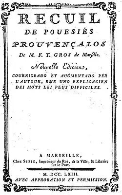 • [1] Recuil de pouesiés prouvençalos, 1763 edition.