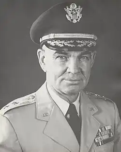 He was mobilized for World War II and commanded 1st Battalion, 172nd Infantry Regiment. He also carried out staff assignments with the 43rd Infantry Division, War Department General Staff, I Armored Corps in the North African Campaign and Seventh United States Army during the invasion of Sicily.[6][7]
