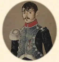 His first child, Manuel Santander, was born when Santander was only 19 years old and a second lieutenant in the National Guard Battalion while he was posted in the town of Honda with a local woman of that town.[80] His second son Francisco de Paula Jesús Bartolomé Santander Piehdrahita, was born on August 23, 1833, to Paz Piehdrahita Saenz, despite being born out of wedlock Santander recognized him as his legitimate son in his testament, and also referred to him affectionately by his nickname "Pachito". "Pachito" would follow his father's footsteps and served in the Colombian military reaching the rank of general and would pass away in 1916.[81]