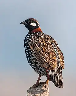 - Mandiwana-Neudani, T.G.; Little, R.M.; Crowe, T.M.; Bowie, R.C.K. (2019). "Taxonomy, phylogeny and biogeography of 'true' francolins: Galliformes, Phasianidae, Phasianinae, Gallini; Francolinus, Ortygornis, Afrocolinus gen. nov., Peliperdix and Scleroptila spp". Ostrich. 90 (3): 191–221. Bibcode:2019Ostri..90..191M. doi:10.2989/00306525.2019.1632954. S2CID 208597134.