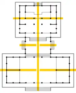 Wright designed the house of Cornell University's chapter of Alpha Delta Phi literary society (1900), the Hillside Home School II (built for his aunts) in Spring Green, Wisconsin (1901) and the Unity Temple (1905) in Oak Park, Illinois.[65][66] As a lifelong Unitarian and member of Unity Temple, Wright offered his services to the congregation after their church burned down, working on the building from 1905 to 1909. Wright later said that Unity Temple was the edifice in which he ceased to be an architect of structure, and became an architect of space.[67]