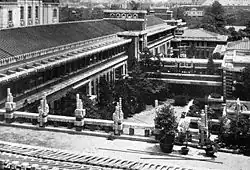 While working in Japan, Wright left an impressive architectural heritage. The Imperial Hotel, completed in 1923, is the most important.[68] Thanks to its solid foundations and steel construction, the hotel survived the Great Kantō Earthquake almost unscathed.[69] The hotel was damaged during the bombing of Tokyo and by the subsequent US military occupation of it after World War II.[70] As land in the center of Tokyo increased in value the hotel was deemed obsolete and was demolished in 1968, but the lobby was saved and later re-constructed at the Meiji Mura architecture museum in Nagoya in 1976.[71]