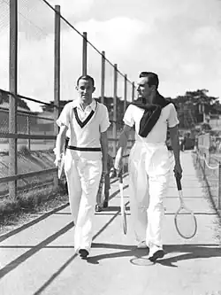 Fred Perry (right) with Pat Hughes at White City in Sydney, Australia, in 1934