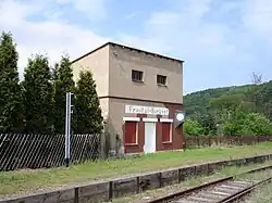Petitions from Neubannewitz, Boderitz, and Cunnersdorf led to the Cunnersdorf (near Freital) halt (formerly Boderitz-Cunnersdorf) in 1908. It served Marienschacht mine commuters and Sunday excursionists to the Zur Prinzenhöhe dance hall. The wooden station building relocated from Dresden-Plauen in 1923, was restored in 2010 with sponsor funding.[22][23]
