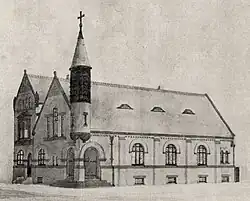 The church's building at the corner of DeLancey and 22nd Street was opened for services on April 1, 1888 (Easter Sunday). It was described as "a beautiful little chapel of brick, in Gothic style, steeple and belfry, stained glass windows, open roof in the interior, with oak casing and walnut beams, a gallery all across the lower portion of the church and a beautiful recess [sic] chancel, with a broad platform in front."