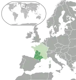 The French Great South-West (Occitan: Gran Sud-Oèst francés) is a geographical, sociological, economic and cultural entity bringing together the administrative regions of Nouvelle-Aquitaine and Occitanie, resulting from the merger on January 1, 2016, of five previous regions; in these two regions combined, it covers 156,000 km2, or 29% of the territory of metropolitan France. It is a grouping devoid of its own political or administrative structures, set up, with the objective of an interregional reflection on spatial planning at the level of new European issues, at the initiative of the Interministerial Delegation at territory planning and regional attractiveness.