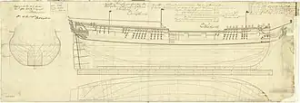 Royal Navy plan of Etna as taken off in 1796, prior to being fitted as a 20-gun sixth-rate post-ship
