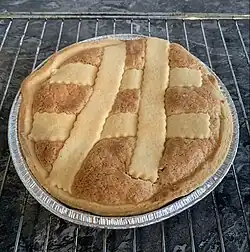 Fyrstekake or prince's cake is a Norwegian cake consisting of shortcrust pastry, almond filling or marzipan, rum, powdered sugar, butter, cardamom, cinnamon, and eggs.[1] It typically has a signature lattice pattern on top and a decadent, moist filling.[2] It is occasionally topped with whipped cream and served during Christmas, along with coffee or tea.[3]