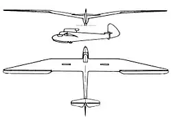 It was made out of wood and fabric with cantilevered 'gull' wings. A B-version in 1938 had thinner wings with a modified section and the gull's kink in a different place. The undercarriage was non-retractable. It was the first glider built to carry water-ballast in a tank behind the pilot.