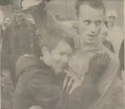 ![]() Öhlund is met by his wife Ingrid, after winning the world championship in the relay in 1968. | ||||||||||||||||||