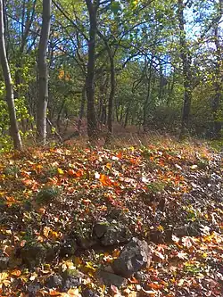 Of the former buildings only a few foundation walls are recognisable. Still easy to make out are the foundation walls of the two gatehouse towers. Little is known of its history. The castle was probably built in the 11th century.[1] First mentioned around 1326, the site was already recorded as devastated by about 1600. Among its former owners were the Lords of Kneitlingen and the Counts of Stolberg.