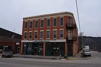 G. Kerndt & Brothers Office Block, also known as the Kerndt Brothers Building, is a historic building located in Lansing, Iowa, United States. The four Kerndt brothers were all German immigrants who settled in the Lansing area by 1854. Gustav, William and Mortiz established a broom factory and cigar business in town while Herman farmed and provided the broom corn for the factory. In 1861 they built the first part of this building to house their general store. They were so successful they expanded the building in 1866.[2] In addition to the store they also owned a gran elevator along the Mississippi River. Added to this they started in private banking as a part of their mercantile business. In 1908 it was incorporated by the family as the Kerndt Brothers Savings Bank.[2] This building now houses the Kerndt Brothers Savings Bank Community Center.