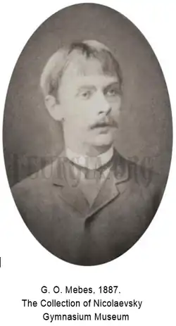 Baron Gregory von Mёbes (1868 (Riga, Latvia, then Russian Empire) - 1930[1] or 1934[2] (Ust-Sysolsk, Russia, then Soviet Union), better known by his pseudonym G. O. Mebes[a], was a leader of Russian Freemasonry, Grand Lodge "Astraea",[3] with more than 200 years of existence at that time, and the founder of the "Initiation School of Western Esotericism".