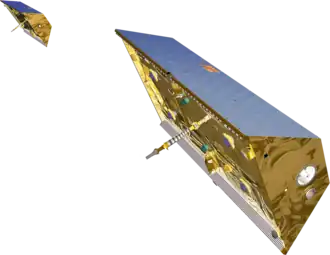The GRACE-FO satellites obtain electricity from gallium arsenide solar cell array panels covering the outside of each satellite.[62]
