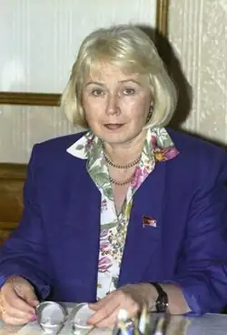 Galina Vladimirovna Semenova (24 April 1937 – 19 November 2017) was a Soviet-Russian Politician and a high-standing member of the Communist Party of the Soviet Union (CPSU).[1] She was a member of the CPSU Politburo (28th term) and the CPSU Secretariat (28th term). She was one of four women ever to be a part of the Politburo, one of three women to be full members of the Politburo, and one of seven women to serve in the Secretariat.