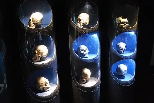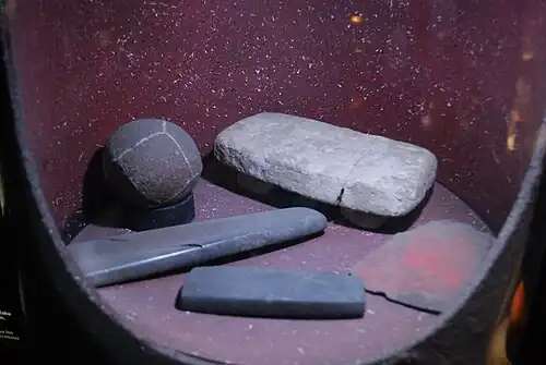The museum's facade is noted for its simplicity, as it shows only the access gate framed in quarry. The interior is small with only 7 permanent exhibition rooms.[3] Of the exhibition rooms, the Loma San Gabriel Stage room is of particular significance, as it depicts types of housing and instruments (estimated to be around 3,000 years old) from the Loma San Gabriel culture, perhaps the forerunner of the contemporary Coras, Huichols, and Tepehuanes who still inhabit Durango.[3]