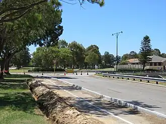 The proposed highway was to originate at Rae Road, which, in turn, connects to Read Street further east, and swing in a north-westerly direction, passing Lake Richmond to the west, to connect to the Garden Island Causeway at Point Peron Road at Peron.[2] As of 2024, only the section from Rae Road to the intersection with Hawker Street and Belgravia Terrace are constructed, which is approximately 500-metre (0.31 mi) long. Beyond the latter, a road reservation continuous to exist.[1]