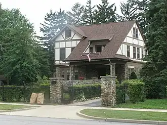Garrettson-Baine-Bartholomew House is a historic home located at Michigan City, LaPorte County, Indiana. It was built in 1908, and is a two-story, asymmetrical, Tudor Revival style dwelling. It features a full-length porch, stone first story, and stucco and half-timbering on the second story.[2]: 5