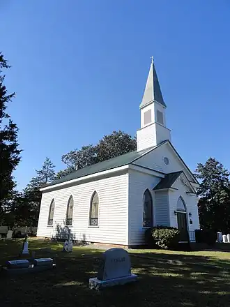 Garysburg United Methodist Church and Cemetery, also known as Chapel Grove Church, is a historic Methodist church and cemetery located on SR 1207 in Garysburg, Northampton County, North Carolina. It was built about 1853, and is a one-story, three-bay, temple-form Greek Revival style frame church. It features a projecting vestibule and a tall, graceful bell tower added in 1905. Adjacent to the church is the cemetery.[2]