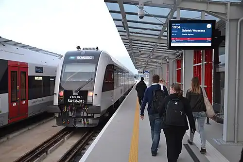 • Pomorska Kolej Metropolitalna services (R) Kościerzyna — Gdańsk Port Lotniczy (Airport) — Gdańsk Wrzeszcz — Gdynia Główna[3]