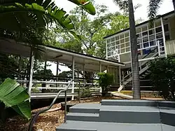 - a highset timber school building with semi-enclosed stair (Block E, 1956, extended: c. 1957, c. 1958)