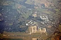 Airports generally have long, fully lit, hard-surfaced runways, full air traffic control, and navigation and landing aids. They are usually located on urban fringes, support commercial and business operations, and often exclude certain types of light aircraft.[56] At the more rurally located airfields, the lighter end of aviation, such as microlight and gliding activities, becomes increasingly prevalent, and there are few or no commercial operations other than flying schools. At this level runways are generally shorter, and grass surfaces are increasingly common. Navigation aids are increasingly scarce, being more basic where they are available, and informal ground to air radio communication replaces air traffic control. The smallest airfields are too small to feature on general purpose Ordnance Survey (OS) maps, and lack basic facilities such as fuel and maintenance.[57] The majority of airstrips are basically single short grass runways with no supporting facilities, although the presence of a hangar is not uncommon at the larger examples. They do not feature on OS maps, and are owned by private clubs or, more commonly, individuals.[58]