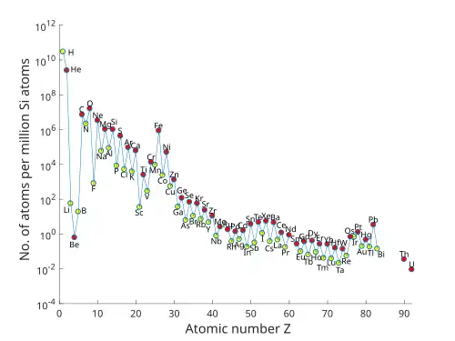 - ^ Data from table 6 of Cameron, A.G.W. (September 1973). "Abundances of the elements in the solar system". Space Science Reviews. 15 (1): 121. Bibcode:1973SSRv...15..121C. doi:10.1007/BF00172440. S2CID 120201972.