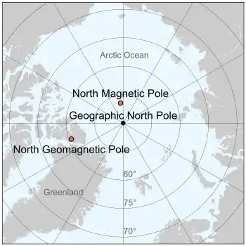 1. ^ "Magnetic North, Geomagnetic and Magnetic Poles". wdc.kugi.kyoto-u.ac.jp. Retrieved 2019-12-18.