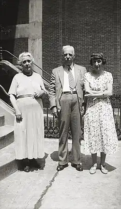 Pictured left to right: Celine Alexandrone Constance Chaudet (wife of Georges Joseph Rasetti), painter and ceramicist Georges Joseph Rasetti, and Alice Eléonore Anne Rasetti (daughter of Georges Joseph Rasetti).