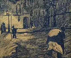 Une Rue de Nuit, Paris (A Street at Night, Paris). Circa early 1900s.