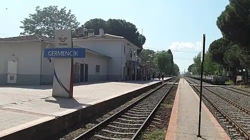 Germencik railway station (Turkish: Germencik istasyonu) is a railway station in Germencik, Turkey. It is located adjacent to the D.550 state highway, known as Atatürk Avenue within the town. TCDD Taşımacılık operates regional train service from İzmir and Söke to Nazilli, Isparta[1] and Denizli, via Aydın.