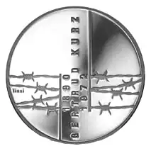 In recognition of her humanitarian work, Kurz was awarded an honorary doctorate by the University of Zurich's Faculty of Theology in 1958, the first woman to receive this honor. In 1965, she received the Albert Schweitzer Prize from Queen Juliana of the Netherlands. The Swiss Federal Council also nominated her for the Nobel Peace Prize, for which she was nominated five times by 1962.[3] In 1992, the Swiss Mint issued a 20-franc commemorative coin in her honor.[4][5] In September 2022, the Swiss Post issued a commemorative stamp for the 50th anniversary of her death.[6]