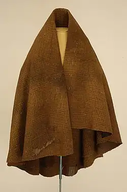 The cloak was originally made of white and brown wool, but it all became brown after having been in the bog for so long.[2] A replica is on display in Falbygden's Museum in Falköping, while the original is stored in the Historical Museum in Stockholm. The cloak has a breadth of 2.48 metres (8 ft 2 in) and a height of 2 metres (6 ft 7 in)