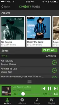 GhostTunes was available via iOS and Android on mobile devices. The GhostTunes application allowed for music purchases to be made within the Android application, and downloading songs and albums directly to the device.[9] It also syncs with the user's local music library, combining internal downloads with GhostTunes purchases for offline listening.[10]