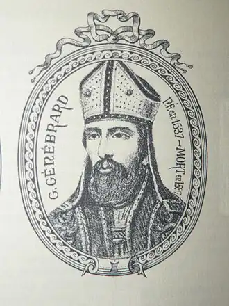 Gilbert Génébrard (12 December 1535, in Riom, Puy-de-Dôme – 16 February 1597, in Semur, Côte-d'Or) was a French Benedictine exegete and Orientalist.