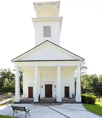 Gillisonville Baptist Church is a historic Southern Baptist church on U.S. 278 in Gillisonville, Jasper County, South Carolina. It was built in 1838, and is in the Greek Revival style. Notable features include the a portico supported by Doric order columns on pedestals. In February 1865, General William Tecumseh Sherman's troops visited the church and etched "War of 1861-62-63-64. Feb. 1865. This is done by a Yankee Soldier," on the communion silver. The congregation became Gillisonville Baptist Church on November 19, 1885.[2][3]