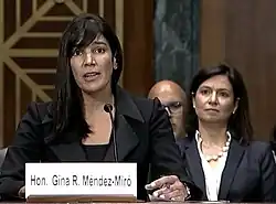 Gina Raquel Méndez-Miró (born 1974)[2] is a Puerto Rican jurist serving as a United States district judge of the United States District Court for the District of Puerto Rico. She previously served as appellate judge of the Puerto Rico Court of Appeals.[3]