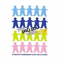 "Gine Mazi Mou Paidi" is a song written by Thanos Papanikolaou in 2006 specifically to raise money for a fundraiser οrganized by ANT1 TV. Many popular presenters, actors, singers and others from the radio station "Rythmos 94.9" participated to the fundraiser to help raise money for the poor and disabled children all over the Greece.[1]