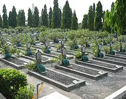 The former governor of Central Java, HM Ismail, was buried in Giri Tunggal following his death on 23 February 2008.[7] Between 2009 and 2011 the cemetery was fenced at a cost of Rp 2.7 billion. After the renovations, Social Minister Salim Segaf Al-Jufri described the cemetery as the second best heroes' cemetery in the country, after Kalibata Heroes' Cemetery in Jakarta. At the time it held 1,843 interments.[1] Of these, according to the Semarang-based daily Suara Merdeka only two, Kho Siang Bo and Lie Eng Hok, have explicitly Chinese names; Kho may have been a fighter during the Five Day Struggle in October 1945, while Lie was an early figure in the Indonesian Communist Party who was detained in Boven-Digoel for five years.[8][9]