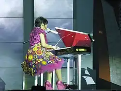 Gutawa playing the piano in the Kotak Musik Gita Gutawa concert, 2008
