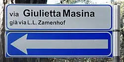 Masina died from lung cancer on 23 March 1994 at age 73, five months after her husband's death on 31 October 1993.[13] For her funeral, she requested that trumpeter Mauro Maur play "La Strada" by Nino Rota,[14] a poignant leitmotif from the film. Masina is buried with Fellini and their son, Pierfederico, in a bronze sepulchre sculpted by Arnaldo Pomodoro in the Monumental Cemetery of Rimini.[15][16]