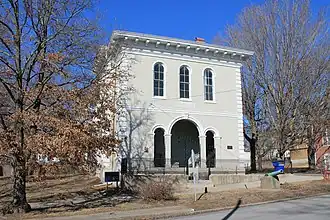 Glasgow Public Library, also known as Lewis Library, is a historic library building located at Glasgow, Howard County, Missouri. It was built in 1866, and is a two-story, Italianate style brick building. It features round-arched windows and doors, and a high bracketed cornice with its broad overhanging roof. It is the oldest Missouri library in continuous use.[2]: 3–4  It was originally constructed and used by the now defunct, Lewis College, and was listed on the National Register of Historic Places in 1969.[1]