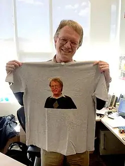 Van Brummelen holding a t-shirt of Van Brummelen.