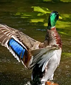 The following is a glossary of common English language terms used in the description of birds—warm-blooded vertebrates of the class Aves and the only living dinosaurs.[1] Birds, who have feathers and the ability to fly (except for the approximately 60 extant species of flightless birds), are toothless, have beaked jaws, lay hard-shelled eggs, and have a high metabolic rate, a four-chambered heart, and a strong yet lightweight skeleton.