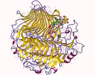 Glucan 1,3-β-glucosidase (EC 3.2.1.58, exo-1,3-β-glucosidase, β-1,3-glucan exo-hydrolase, exo (1→3)-glucanohydrolase, 1,3-β-glucan glucohydrolase) is an enzyme with systematic name 3-β-D-glucan glucohydrolase.[1][2] It catalyses the successive hydrolysis of β-D-glucose units from the non-reducing ends of (1→3)-β-D-glucans, releasing α-glucose.