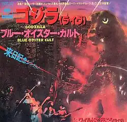 "Godzilla" is a single by U.S. hard rock band Blue Öyster Cult, the first track on the band's fifth studio album Spectres. The lyrics are a tongue-in-cheek tribute to the popular movie monster of the same name. The single release had a picture sleeve featuring a promotional still from the movie Godzilla vs. the Sea Monster.[4] Despite its failure to chart, the song received significant airplay on rock radio stations[5] and soon became a sleeper hit. The song, along with "(Don't Fear) The Reaper" and "Burnin' for You," is one of the band's best-known songs and has become a staple of its live performances. It has been covered by bands such as moe., Racer X, Fu Manchu, The Smashing Pumpkins, Sebastian Bach, Double Experience and Fighting Gravity.[6] It was the walk up song for New York Yankees slugger Hideki Matsui from 2003 to 2009.