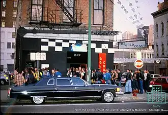 Gold Coast was a leather bar for gay men in Chicago that operated from 1960 to 1988. It was one of the first bars created by and for the gay leather community in the United States.[1][2][3] For most of its 28 year history, between 1967 and 1984, the bar was located at 501 North Clark Street adjacent to Chicago's Gold Coast neighborhood.[4] This was also the period of its legendary basement, called The Pit. It was one of several gay businesses owned and operated by Chuck Renslow.[2] The bar's founding led to the establishment of other gay businesses nearby, creating a kind of "gay district" in the area.[5]